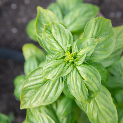 Der Basilikum „Dolly“ ist eine kompakt wachsende Sorte, die sich durch ihre großen, rundlichen Blätter in einem etwas helleren Grün als beim klassischen „Genoveser Basilikum“ auszeichnet. Durch ihren gedrungenen Wuchs eignet sie sich besonders gut für den Anbau im Topf, auf dem Balkon oder im Gewächshaus.