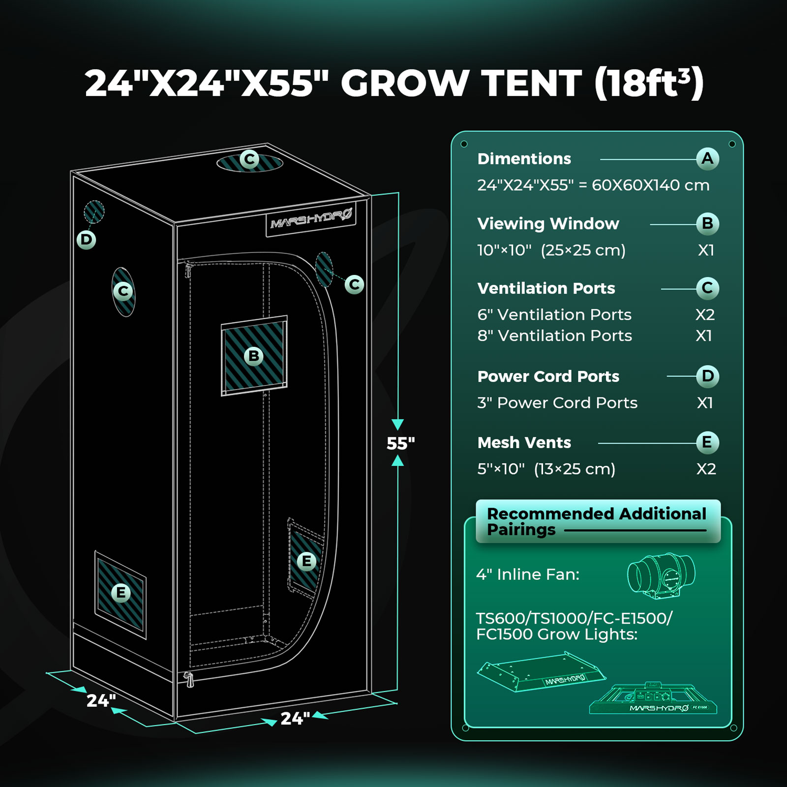 Das Mars Hydro Growzelt mit den Maßen 60x60x140 cm bietet die perfekte Umgebung für die Anzucht und Vermehrung deiner Pflanzen – ideal für Einsteiger und Profis mit begrenztem Platzangebot. Dank seiner kompakten Größe lässt sich dieses Zelt nahezu überall aufstellen – egal ob in der Wohnung, im Keller oder auf dem Dachboden.