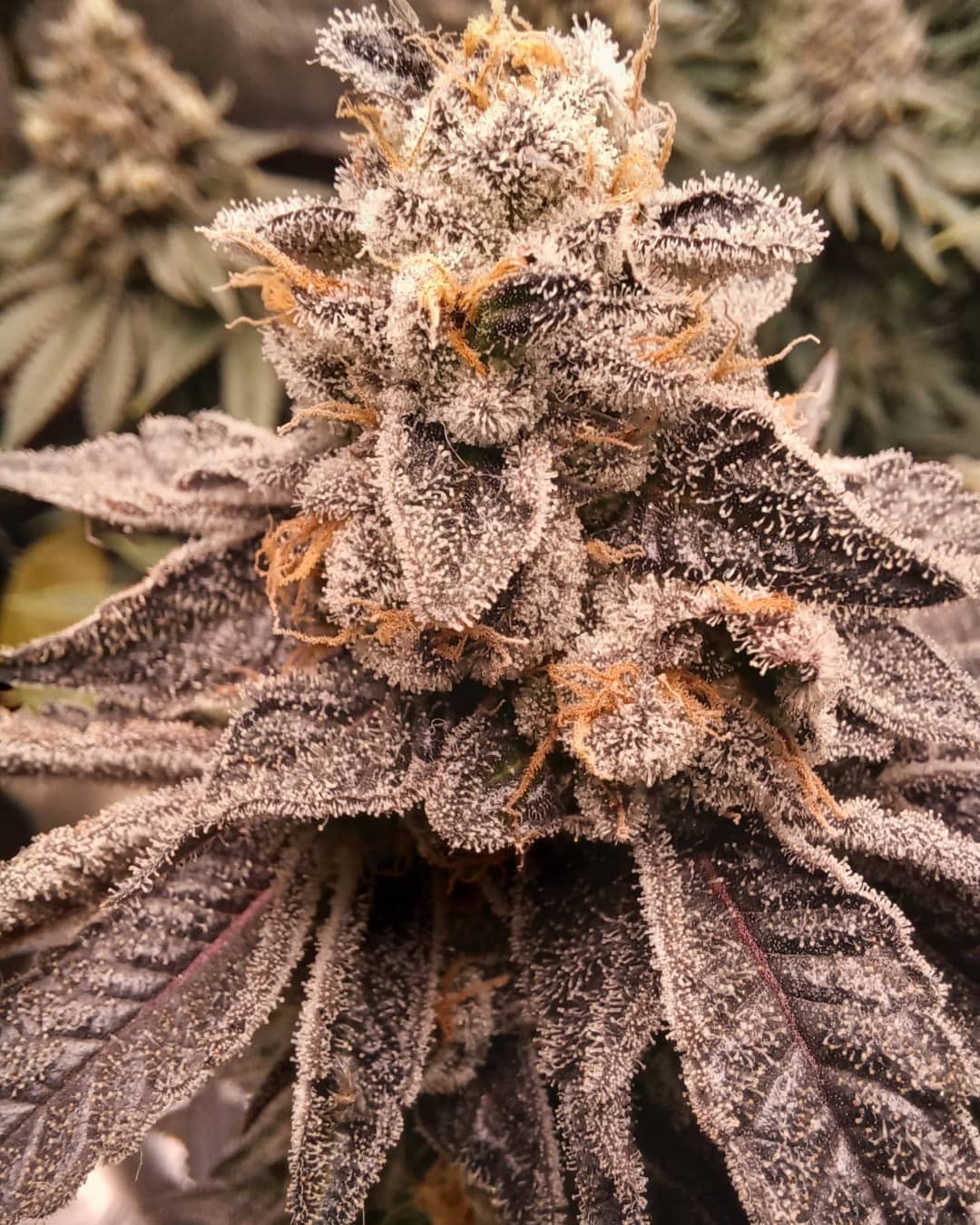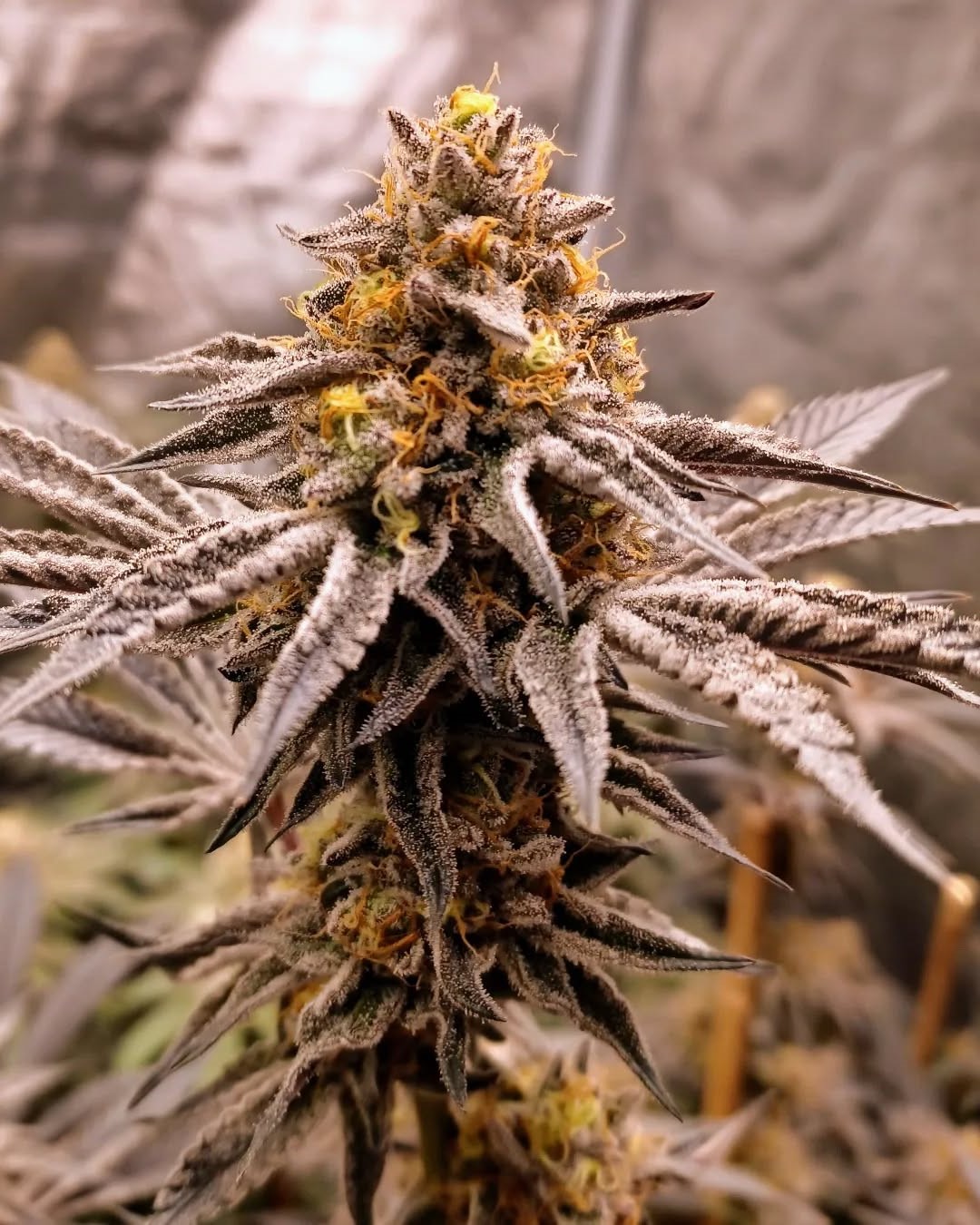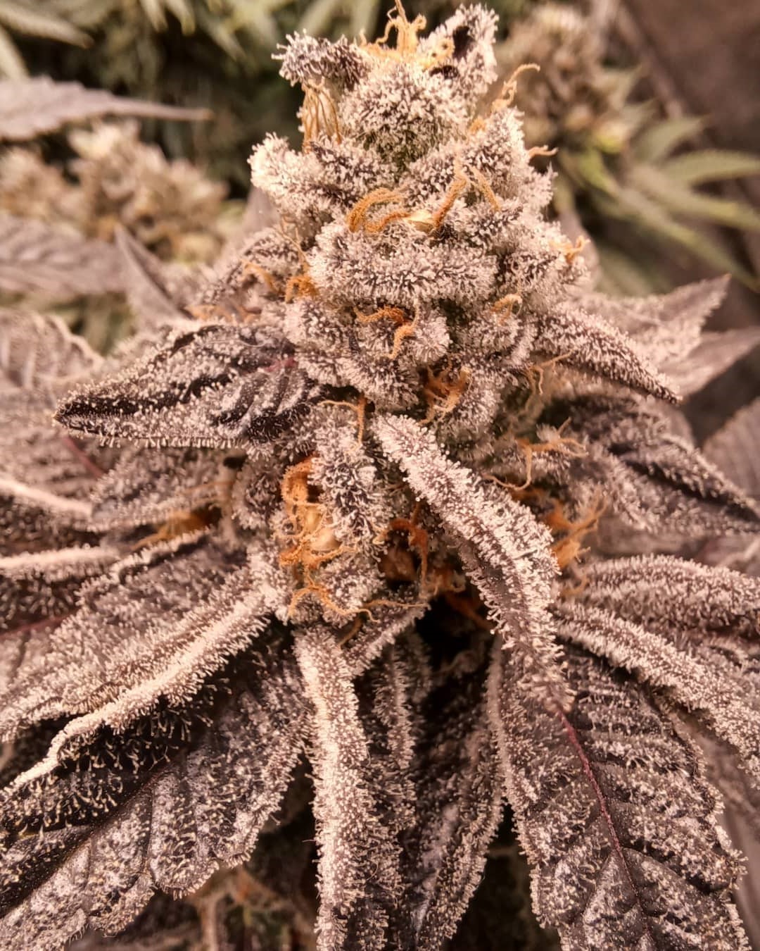 Budstruktur: Kompakt, harzreich, oft mit orangefarbenen Hairen und hellgrüner Basis