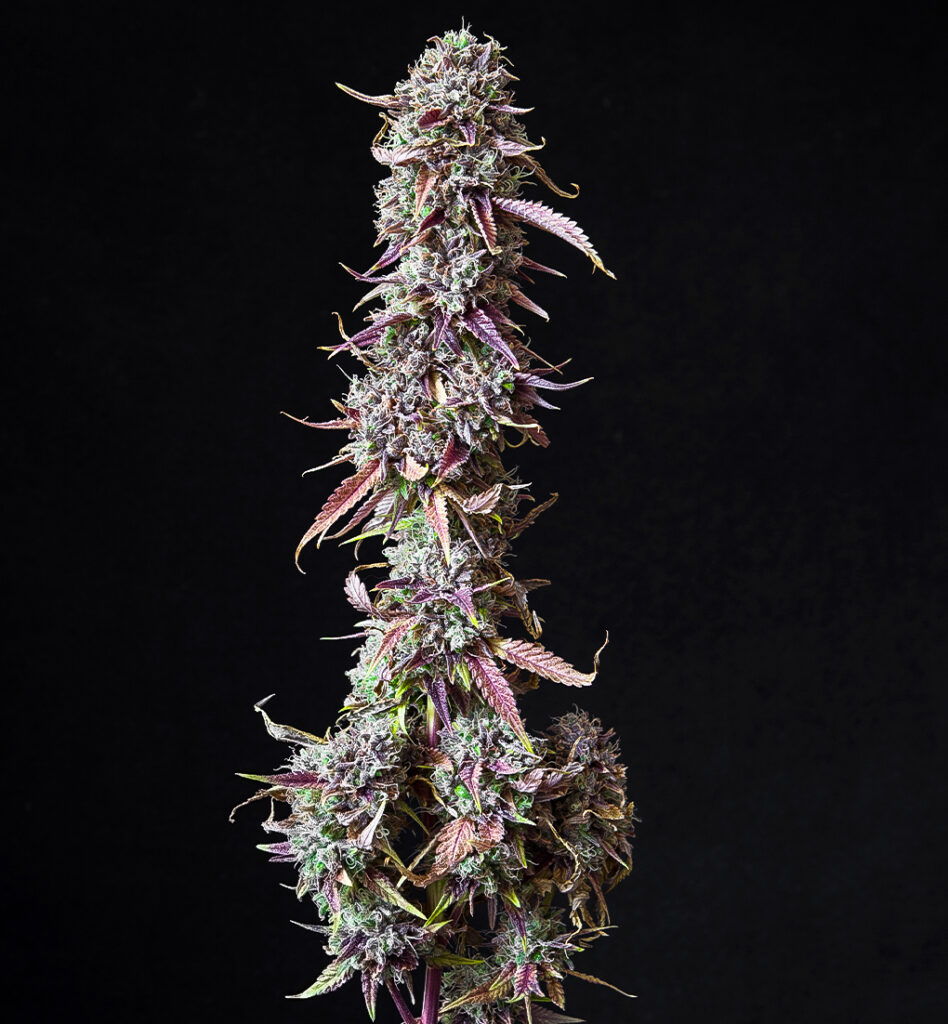 Diese Genetik überzeugt mit beeindruckendem Yield und steinharten Buds, die sich unter optimalen Bedingungen violett färben können. Komplett mit Trichomen überzogen und optisch ein echtes Highlight – doch nicht nur das Auge wird verwöhnt: Auch aromatisch liefert sie ein kompromisslos lautes Erlebnis.
